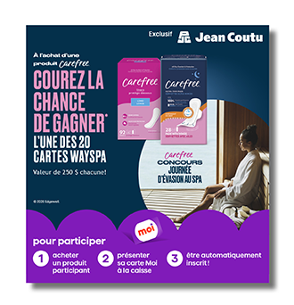 Du 19 mars au 15 avril 2026 avec tout achat d’un produit Carefree participant et sur présentation de sa carte moi valide.