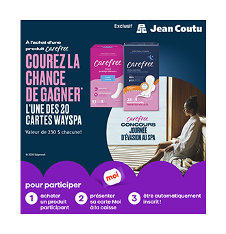 Du 19 mars au 15 avril 2026 avec tout achat d’un produit Carefree participant et sur présentation de sa carte moi valide.